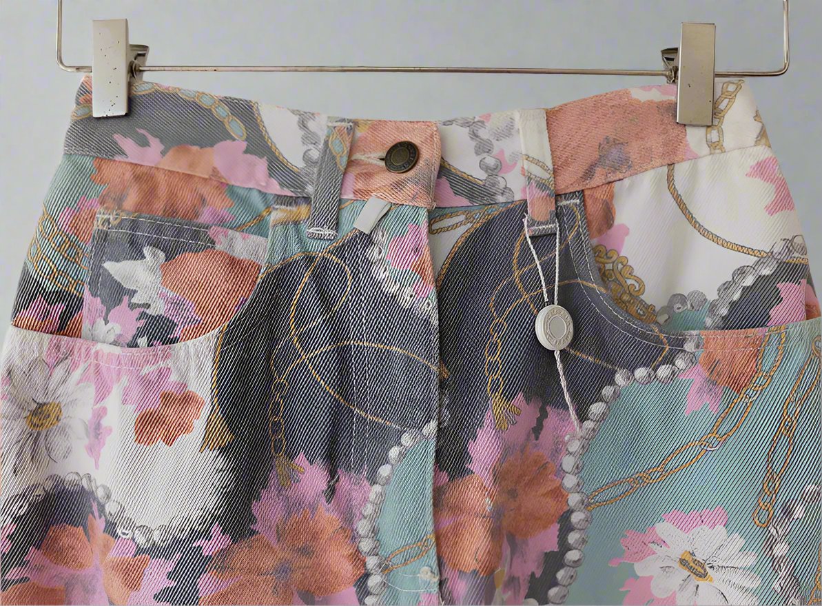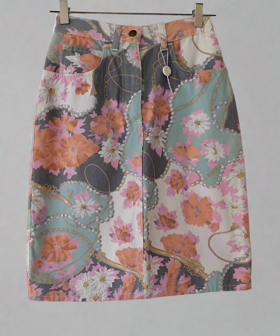 Printed 80's pattern high waist pencil skirt by french brand St. Germain. New with tags. 100% cotton. Made in Italy Size S/XS Waist 33 Hips 47cm Length 55cm