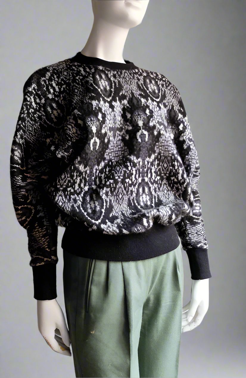 Iconic Boho Romantic themed crew neck jumper by French house Christie Laurie. Bat sleeves. Made in France. Size M Shoulders 60cm Chest 70cm Length 65cm